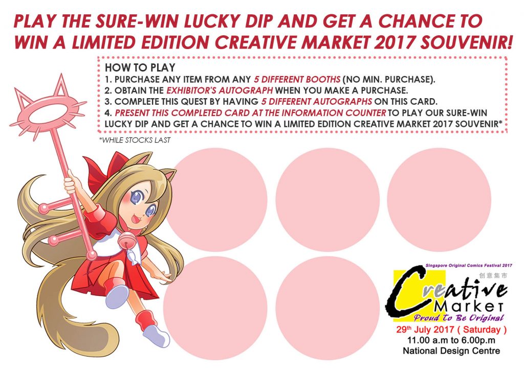 4. Present this completed card at the information counter to play our sure-win lucky dip and get a chance to win a limited edition Creative Market 2017 souvenir!*